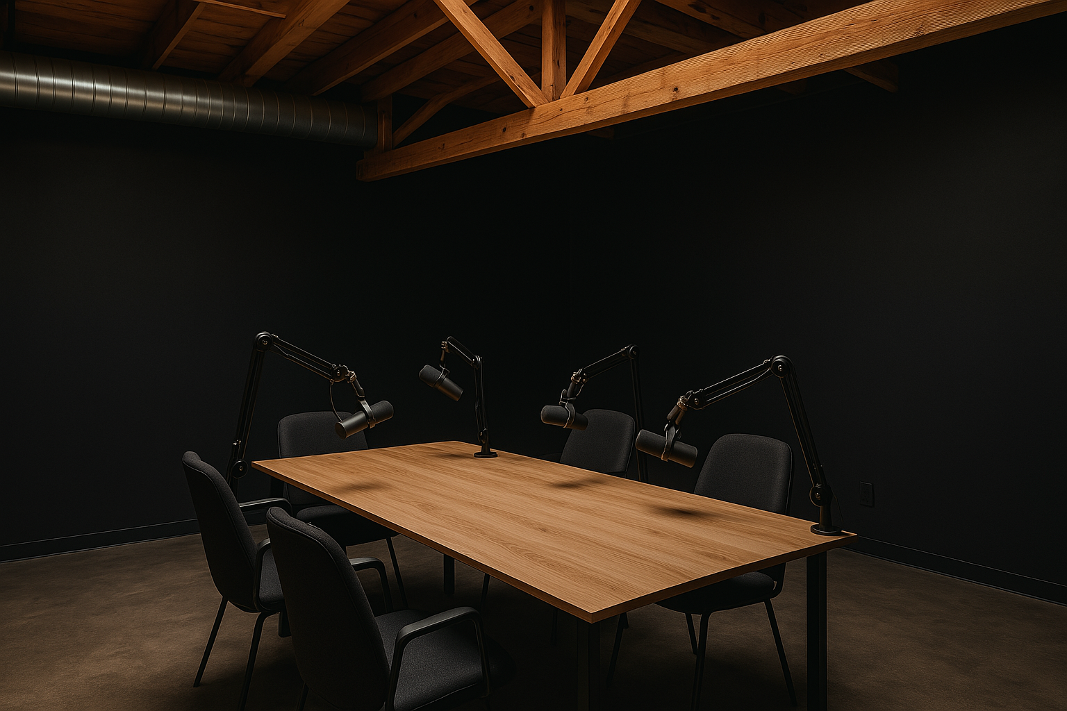 Our new podcast studio is built for creators. High-quality audio, and video options—all in a space designed to make recording easy. A one-stop solution to sound and look great.